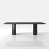 This contemporary wooden dining table combines a spacious rectangular top with sculpted pedestal legs, bringing elegance and function to dining spaces.
