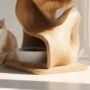 The Farmhouse Inspired Wooden Feeding Station For Pets is designed as an indoor feeding accessory with a wooden form. The unit features a flat upper surface and a lower open compartment designed to hold a single pet bowl within the base area. The wooden construction shows visible grain patterns and natural tonal variation. The open lower section provides a defined space for bowl placement, while the overall structure maintains a compact footprint suitable for indoor settings. This feeding station is intended for placement in living rooms, kitchens, or designated indoor pet areas.