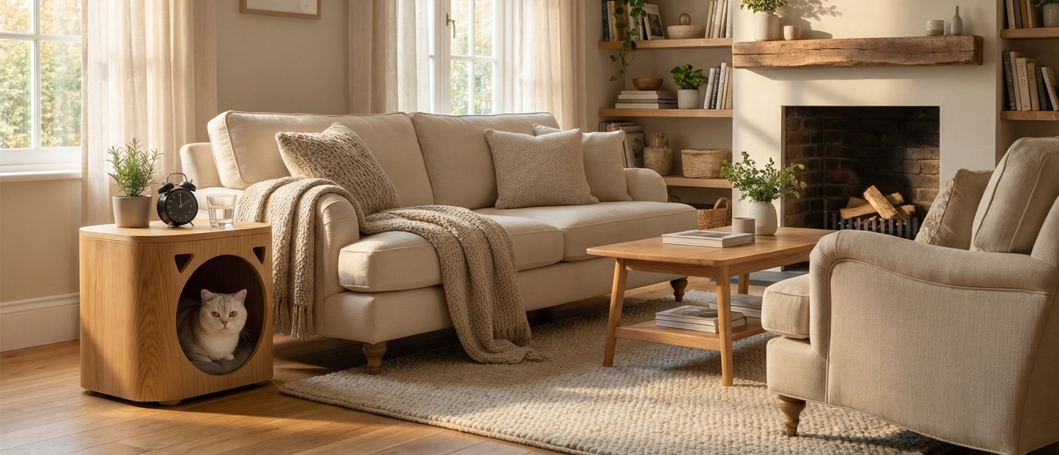 The Minimal Wooden Cat Hideaway Cube Side Table combines modern design with practicality, offering a stylish and cozy retreat for your cat. The cube-shaped piece features a spacious interior with soft bedding, providing a comfortable space for your feline to rest. The unique cat ear design adds a playful touch, while the wooden construction ensures durability. This side table not only enhances your living space but also serves as a practical solution for keeping your cat comfortable without compromising on style. Its minimalist design makes it a perfect addition to any modern home.