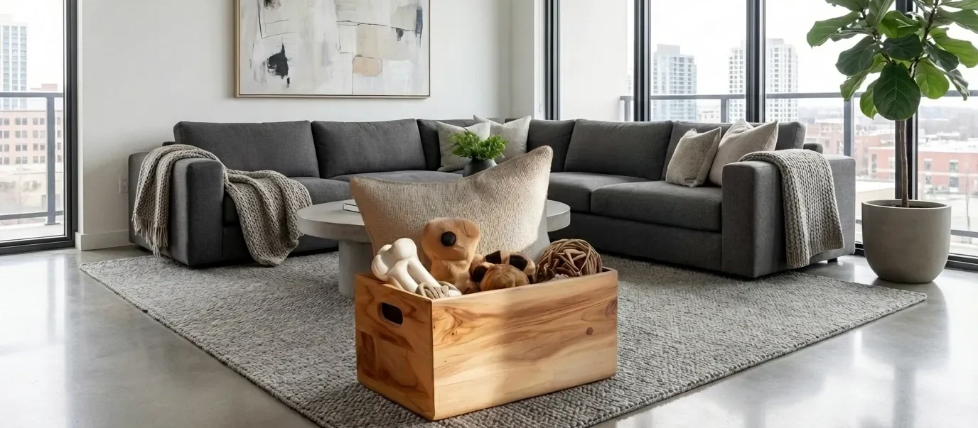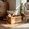 Natural Wooden Pet Toy Organizer Box With Side Handle