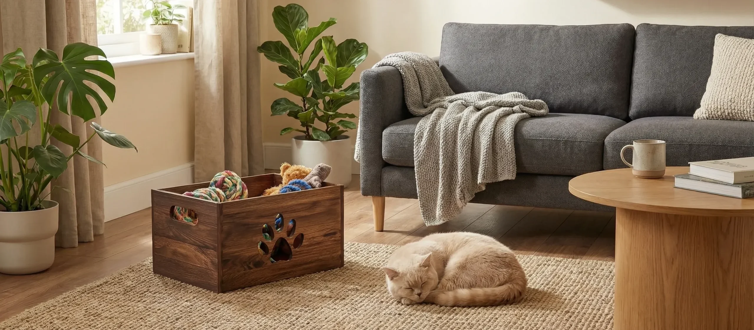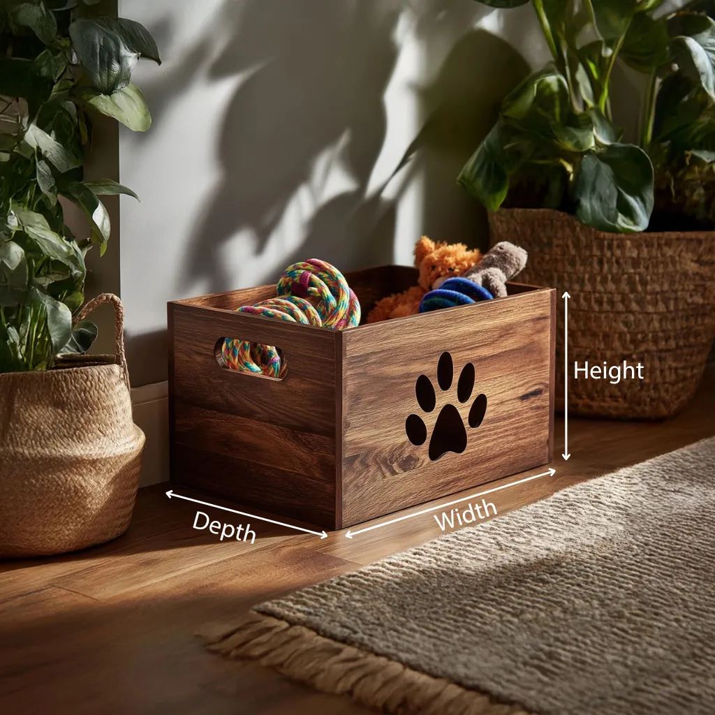 The Paw Cutout Wooden Toy Organizer is a practical and charming way to store your pet’s toys. Crafted from wood, this organizer features a fun paw print cutout on the side, adding a playful and personalized touch to any room. The open design with side handles allows for easy access and portability, while the spacious interior keeps toys, treats, and accessories neatly arranged. Its simple, stylish design seamlessly fits into your home decor, offering a functional and decorative storage solution for your pet’s belongings. Perfect for pet owners looking to organize their space while adding a fun detail to their home.