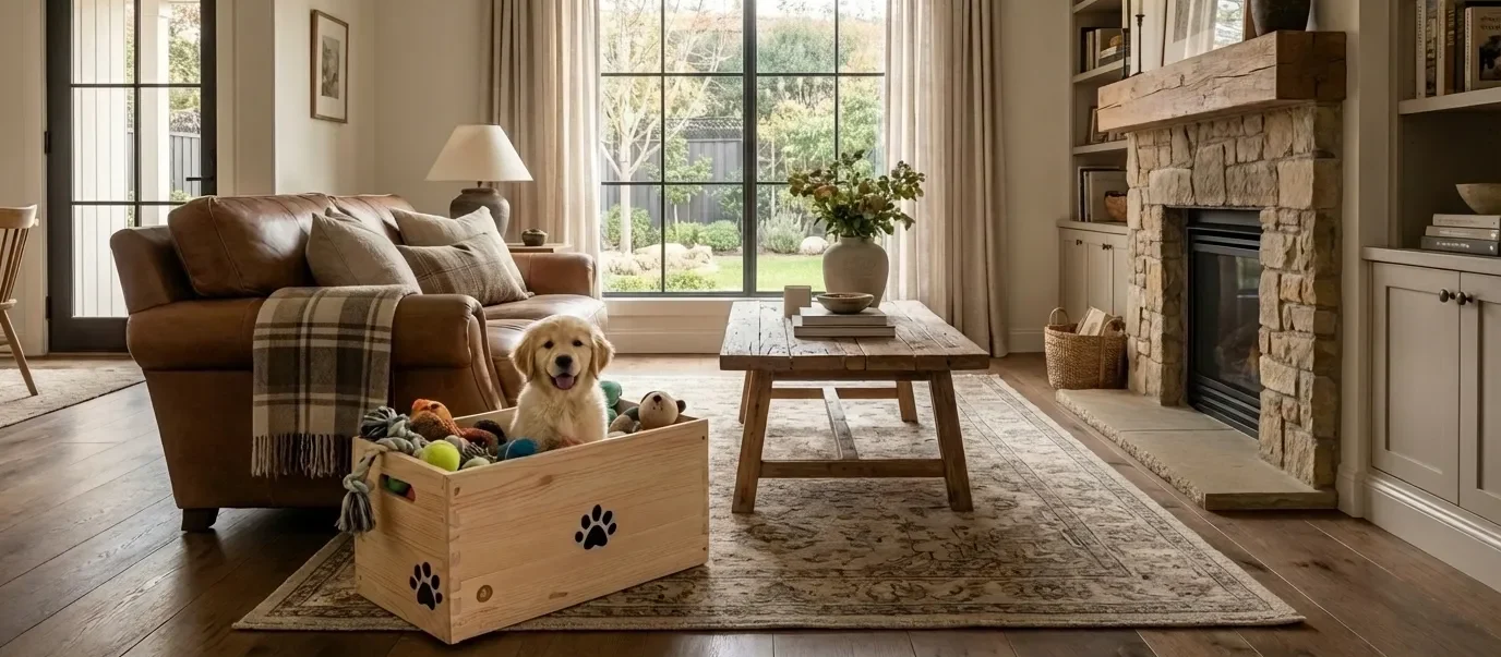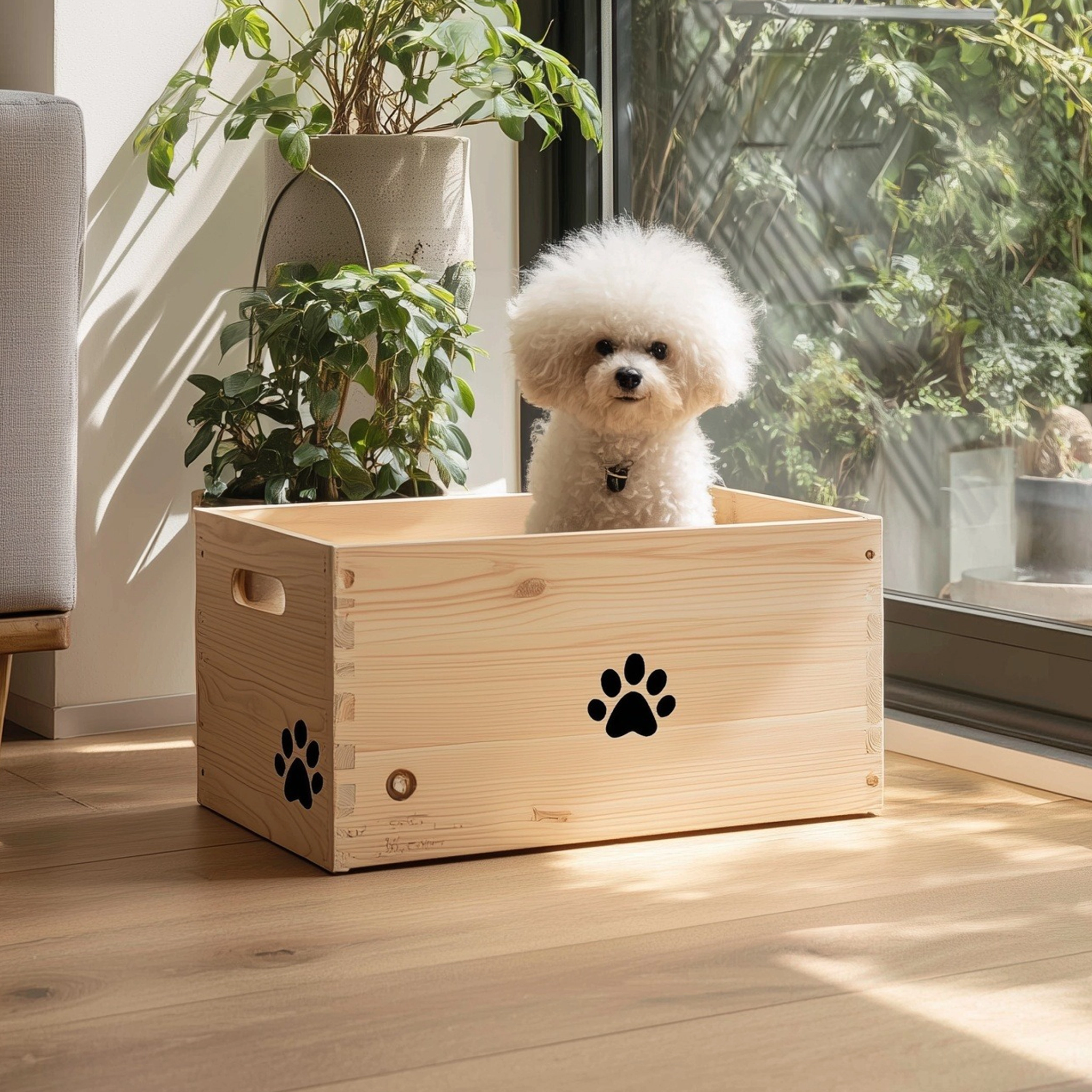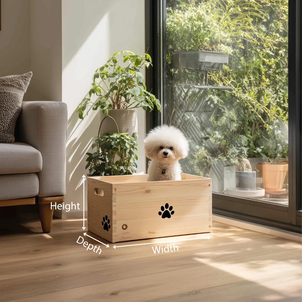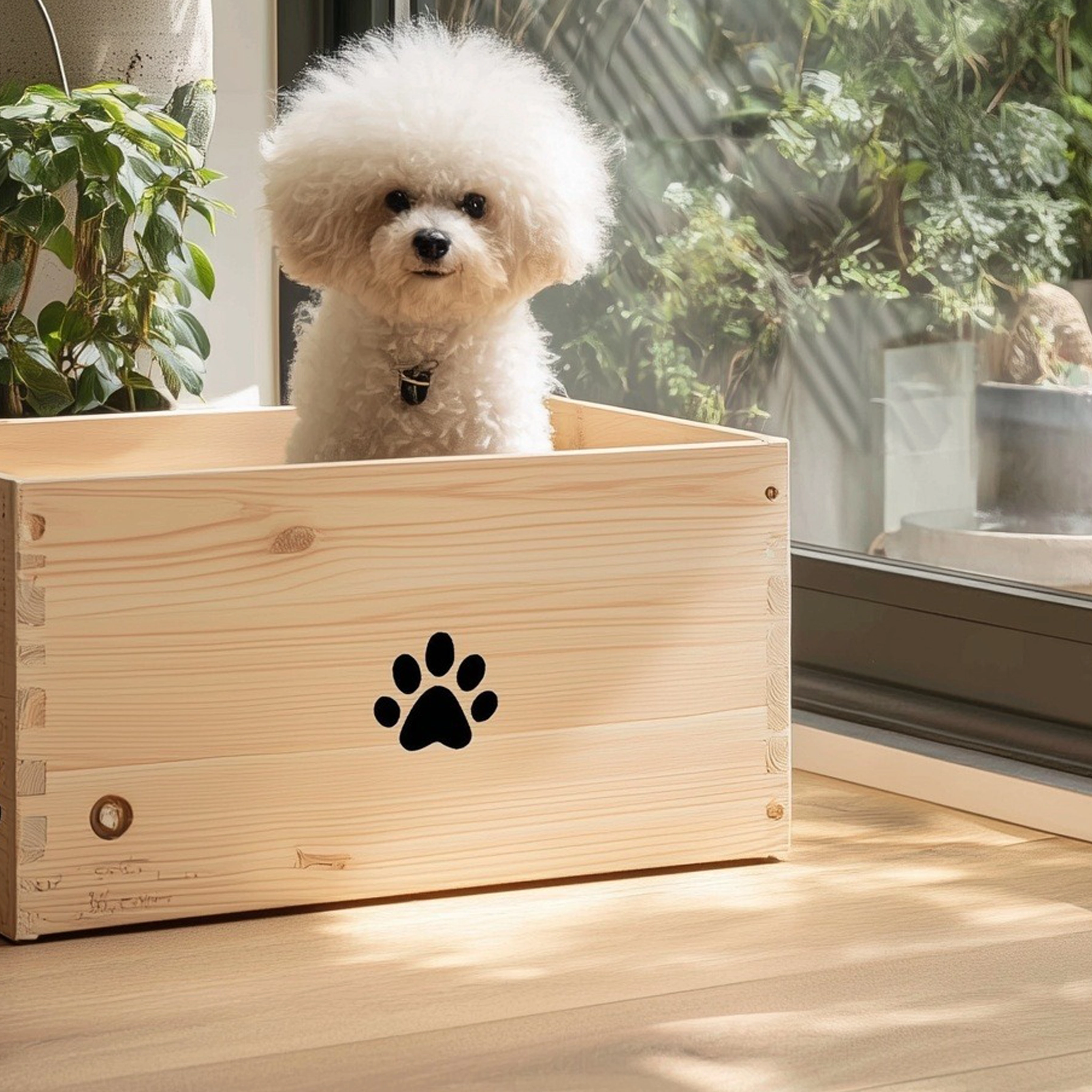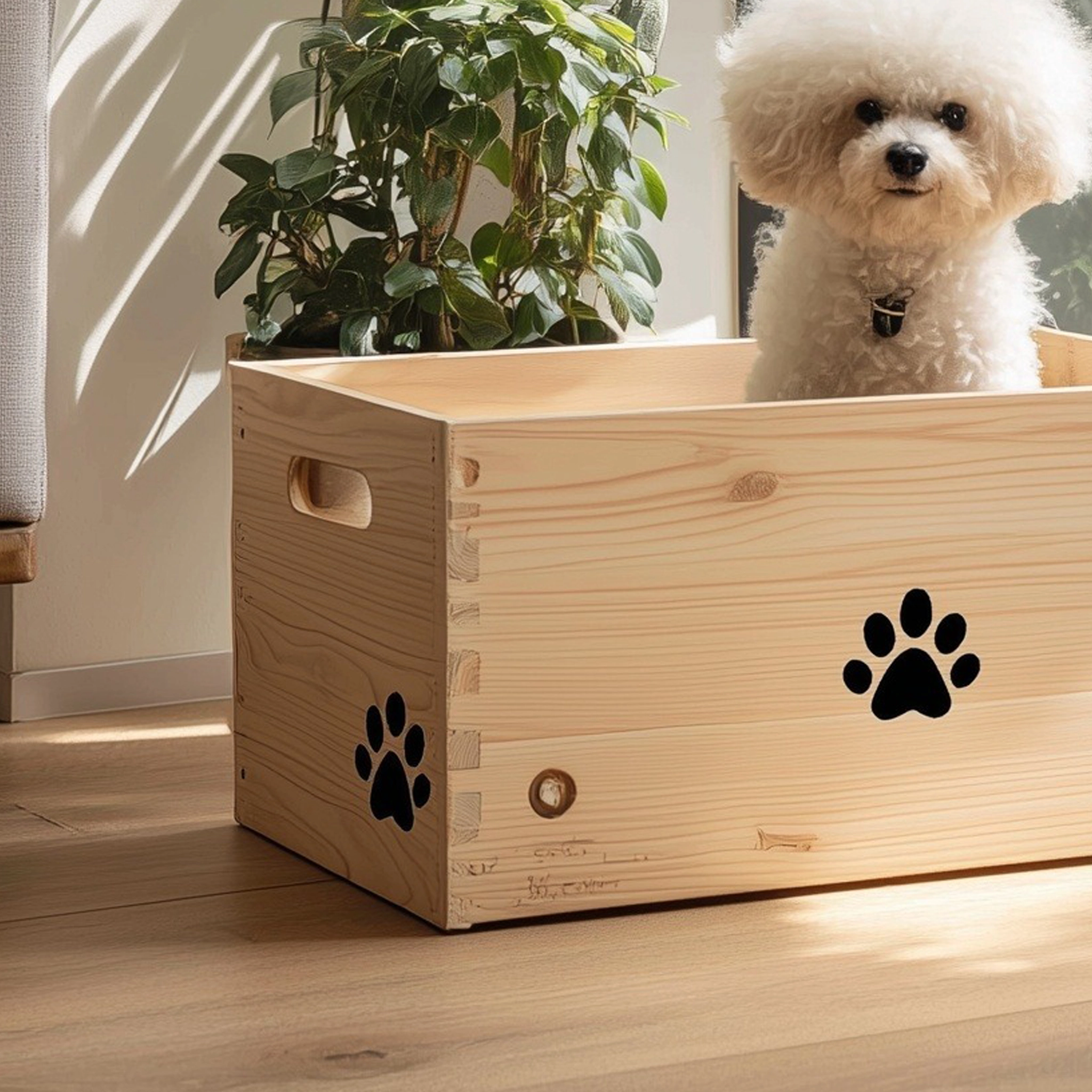 The Simple Wooden Pet Toy Storage Crate with Paw Cutout is the perfect way to store your pet’s toys while keeping your living space tidy. Made from wood, this crate features a playful paw print cutout, adding a fun and personalized detail to its minimalist design. With convenient side handles for easy carrying, it ensures effortless organization of toys, treats, and accessories. The sturdy construction and practical design make this storage crate a functional and stylish addition to any room in your home, perfect for keeping your pet’s items neatly stored yet easily accessible.