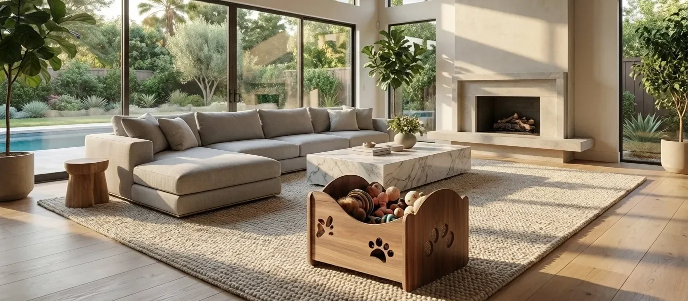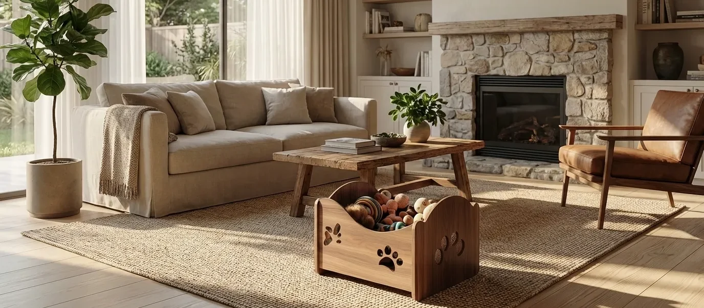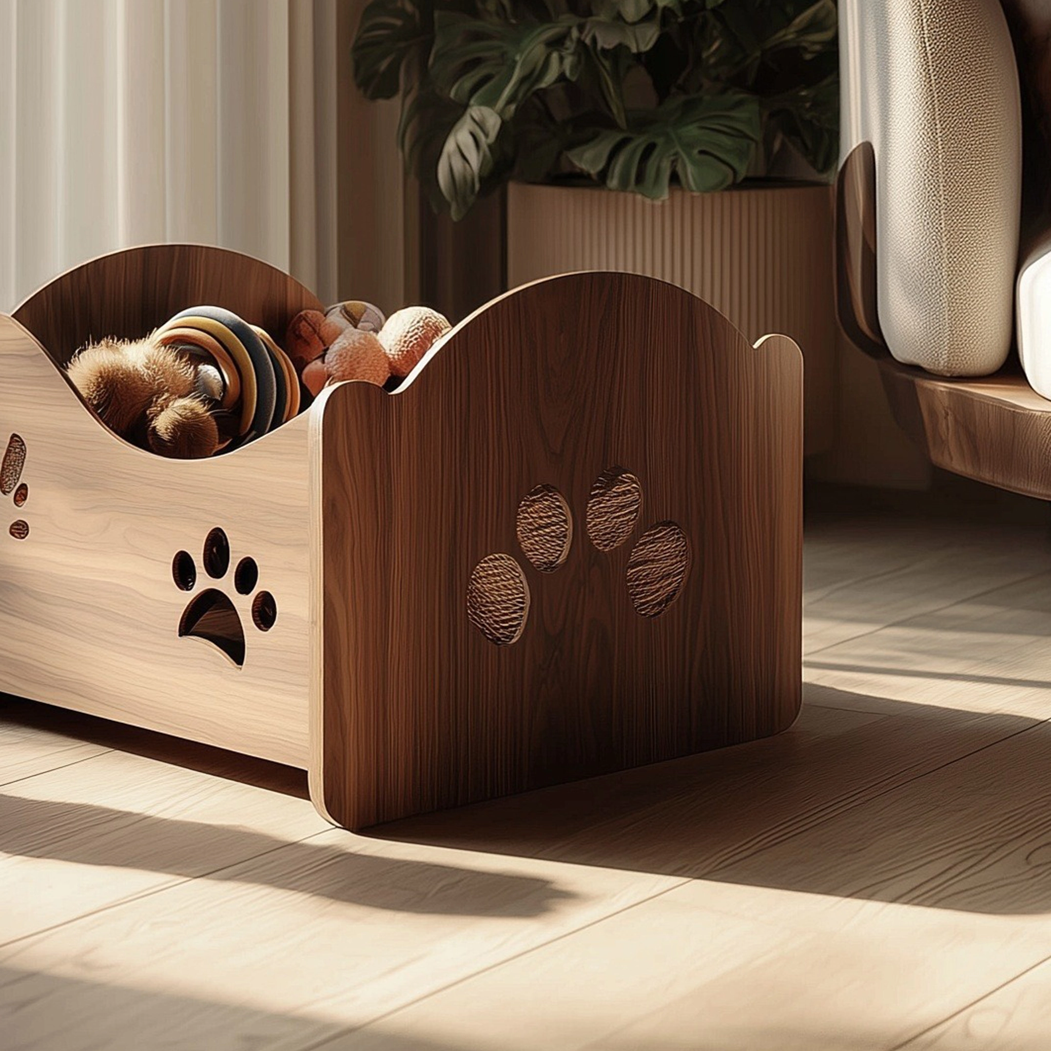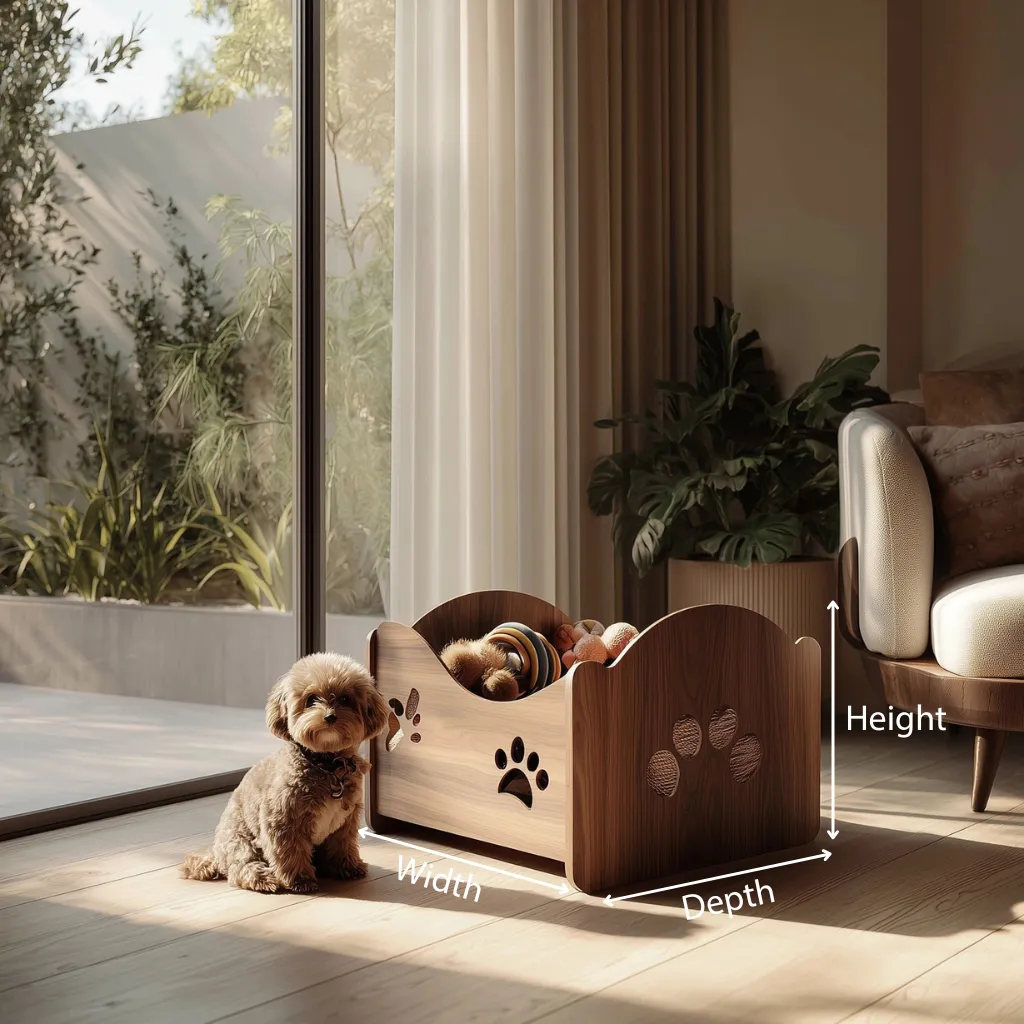 Wooden Paw Accent Pet Toy Organizer Box For Indoor Spaces